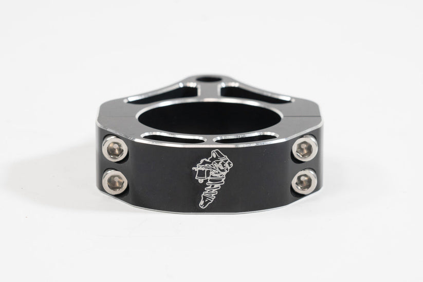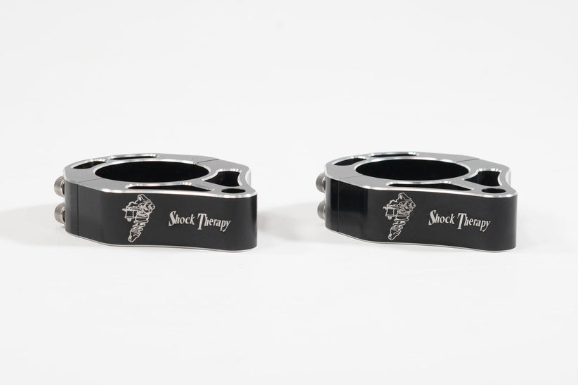 Our patented billet aluminum upper clamp attaches to the body of the shock at the head, without the need for welding. The clamps are also ‘clock-able’ so it can spin around to avoid/clear body panels during install, as well as other clearance items such as radiator hoses and more.