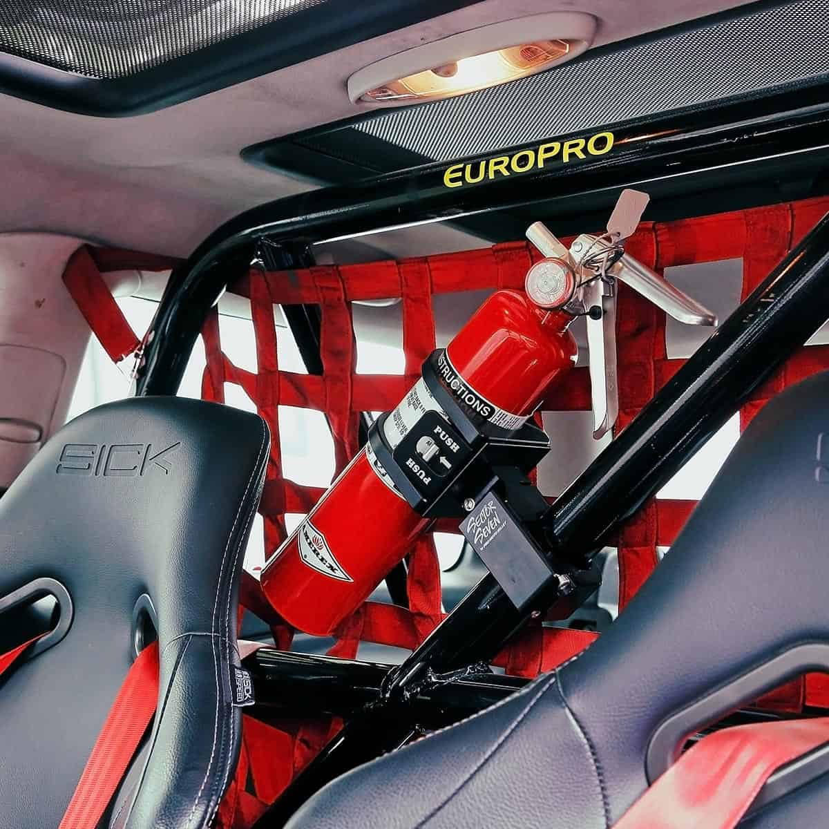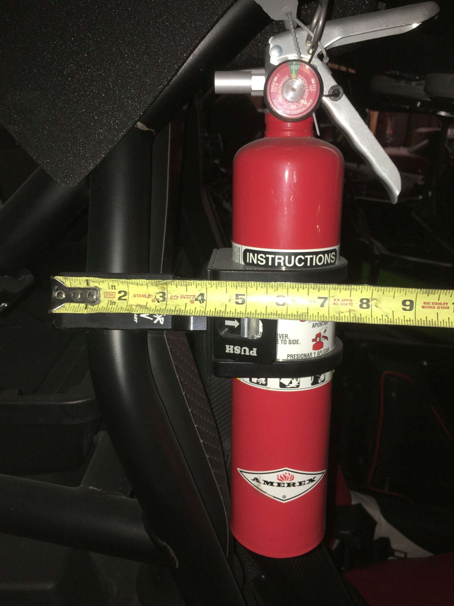 Don't get caught fumbling with your extinguisher during a blaze! Sector Seven’s quick release mount secures your fire extinguisher to most roll bars with 1.25"-2" diameters and gives you immediate one handed access in the event of an emergency. Simply roll the safety tab back push the switch to release! Plus, it’s compatible with most doors and windows. Precision engineered and machined from billet aluminum for durability and a lifetime of rattle-free use. Fits 3″ diameter fire extinguishers including Amerex B417 ABC dry chemical fire extinguisher, Amerex B385TS Halotron (clean agent) fire extinguisher & H3R MX250R ABC dry chemical fire extinguishers. Fire Extinguisher not included, may be purchased separately.