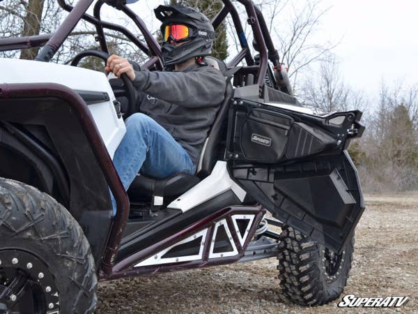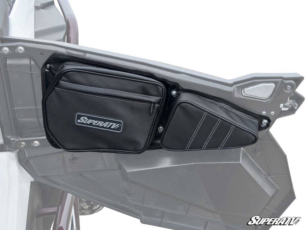 Ever worry about your cell phone or keys when you're riding? Never deal with that headache again with these custom fit door bags from SuperATV! With a dedicated pocket for your cell phone and constructed of a thick durable PVS coated water resistant material, these bags will take care of you for years! Each bag is custom designed to fit your make and model, providing you with a rattle free design that securely fastens to the doors.