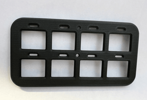 This patent pending product is an enhancement for the Switch-Pros SP8100 and SP9100 switch panel systems, adding value and convenience for the user. Whether traveling through rough terrain, or wearing gloves, this trim piece can be added to the touch panel, to assist in selecting specific switches, and help reduce accidental operation of others.