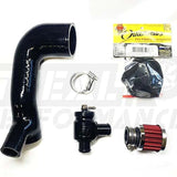 Our Treal Performance complete blow off valve kit with TurboSmart brand valve has that great off throttle "pshhhtt" sound and the benefit of improved throttle response. All you have to do is swap your primary charge tube for the new silicon unit, plug in the new boost/vacuum nipple, and attach your new blow off valve.