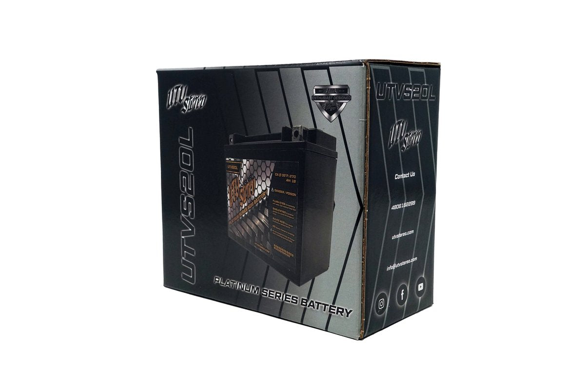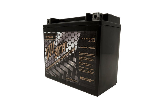 UTVS20L is a prime replacement battery for your Can-Am X3. Our UTV Stereo Platinum Series AGM battery has very low internal resistance, is capable to deliver high currents on demand and offers a relatively long service life, even when deep cycled. AGM batteries must be kept on a battery charger / maintainer during storage in order to maintain optimal performance. Upgrade your battery with one of our platinum series batteries or battery kits.