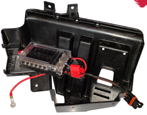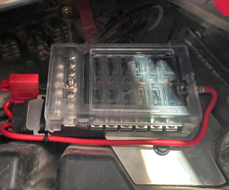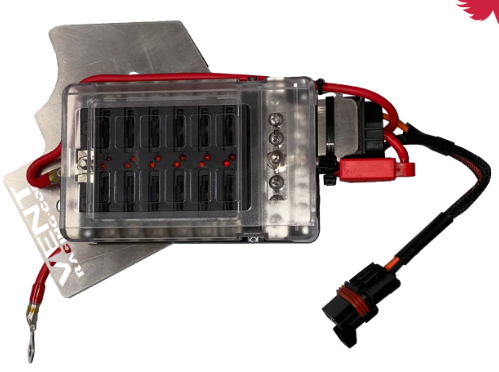 Our 12 fuse under-dash kit is that solution. Like the name says it provides room for 12 fused accessories on a marine grade body, mounted on a laser cut plate specifically for your application, where they are easy to access and still protected from extreme conditions. The fuses are relayed so you get direct battery power without being able to accidentally leave something on and kill your battery. This fuse block is pre-wired to connect to the factory busbar and it is pre-assembled on the mounting plate so install is easy.