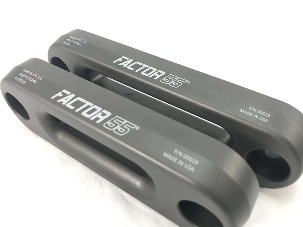 Factor 55 introduces a new line of Aluminum Hawse Fairleads for the Powersports UTV/ATV market. 2 new fairleads offered in the common 4.875″ and 6″ mounting bolt spacing for Powersport UTV/ATV winches.