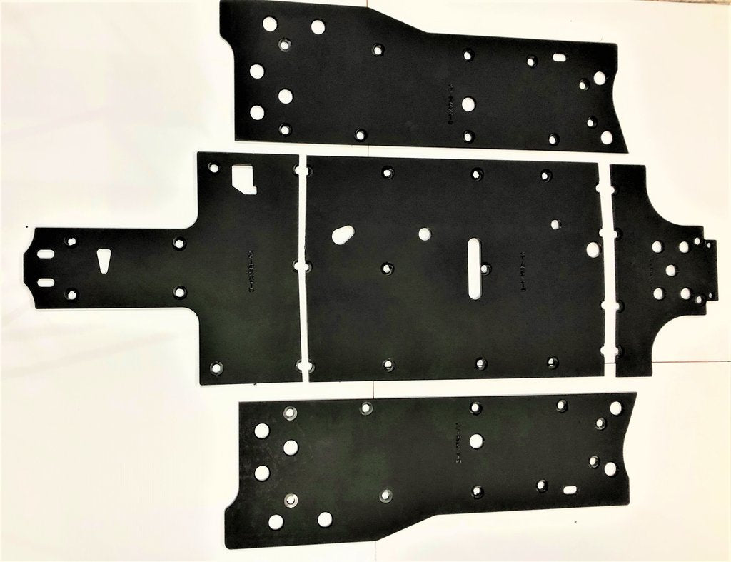 Get the best in under vehicle protection with Trail Armor's full skid plate set for the Yamaha Wolverine RMAX4, RMAX4 1000 X-TR, RMAX4 1000 LT Edition. Made from our own custom blend of ultra high molecular weight polymer, these 1/2" plastic skids are lighter than most traditional metal/aluminum skid plates and because they have no "impact memory", they absorb shocks to the bottom of your vehicle without the dents, galling and corrosion of metal/aluminum skids. Trail Armor was the first in the industry to design skids with leading edges (front and rear) featured on our skid plates. These leading edges protect vulnerable frame edges and wheel wells from blunt edge impacts and act as a starting edge to slide over obstacles without the resistance and drag of metal skid plates. Additionally, these skids for the RMAX4 are designed side panels that extend approximately a 1/2" past the rocker panels to protect the vulnerable sides and rocker panels of your vehicle. Compare Trail Armor's skid set coverage with other skid manufacturer's like items - slider nerfs are either sold separately or the bottom skid coverage ends before the rocker panel, leaving this part of your vehicle unprotected. Trail Armor's skid plates come in easy to install panels. They install directly over the existing metal factory skid plate. Access holes to service points and oil drains make maintenance a breeze. Strategically placed drain holes allow dirt and debris to wash out - you don't have to remove them to clean out the belly your vehicle. However, if needed, individual panels may be removed to access different areas without removing the entire skid plate. Recessed mounting holes protect fasteners from damaging blows and keeping all bolt heads from protruding the skid's surface. All kits come with corrosion resistant hardware and photo-documented installation instructions. Installation videos, if available, are provided as a YouTube video on our site. A-Arm guards and bash plate if shown installed in pictures are not included with this skid set but are sold separately. See part numbers TA011ARMIMP-YW-RMAX4 and TA-YW-RMAX-BASH. Colors are not matched to any OEM graphic package. Colors are considered a special order and are non-returnable.