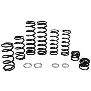 Increase performance with this Dual Rate Spring Kit for Polaris RZR Turbo S 4 These Progressive Tender Springs, Main Springs, and Crossover rings allow for much more adjustment to improve Comfort, High-Speed Control, Roll Stability, and Bottoming Resistance.